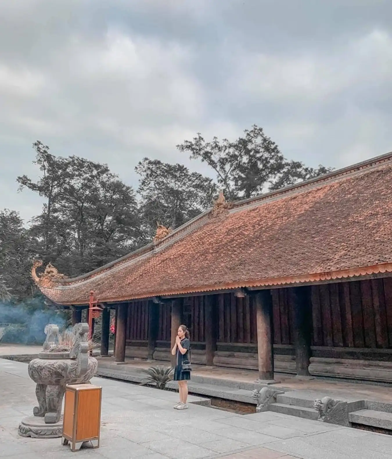 Sau khi check-in với giếng cổ, hãy tiếp tục bước vào sân trước Ngọ Môn. Với các tín đồ vi vu yêu thích kiến trúc hoặc lịch sử, những hoa văn đặc trưng triều Hậu Lê được điêu khắc bên trên sẽ rất hấp dẫn đấy! Qua Ngọ Môn, chúng ta sẽ tiếp cận chính điện với 3 toà nhà lớn. Thiết kế mái cong cổ điển cộng với sắc đỏ rực rỡ của gạch sẽ là điểm nhấn tuyệt vời để check-in.