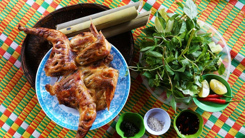 Đến Thanh Hóa thì nhất định không thể bỏ qua món cơm lam gà nướng. Đây là đặc trưng của nơi đây vô cùng nổi tiếng với cơm lam dẻo, thơm ăn cùng gà nướng đậm đà, đẫm vị núi rừng.