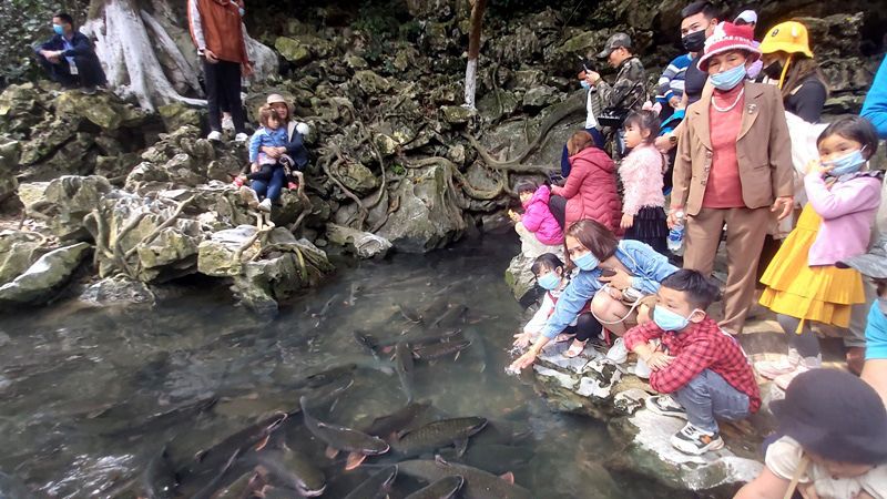 Bạn có thể mua một ít rau, ngô từ người dân xung quanh để cho cá ăn và chơi đùa với chúng. Hàng trăm con cá với đủ màu sắc liên tục bơi lội rất dễ cho ăn vì chúng khá quen với con người.