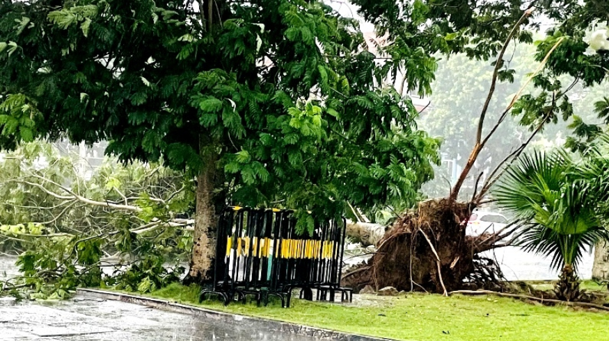 Cây xanh tại khu vực Quảng trường Lam Sơn bị bật gốc.