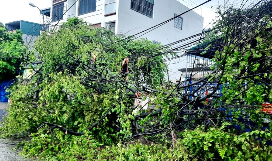 Cây gãy đổ trên đường Lê Thánh Tông, phường Đông Sơn.