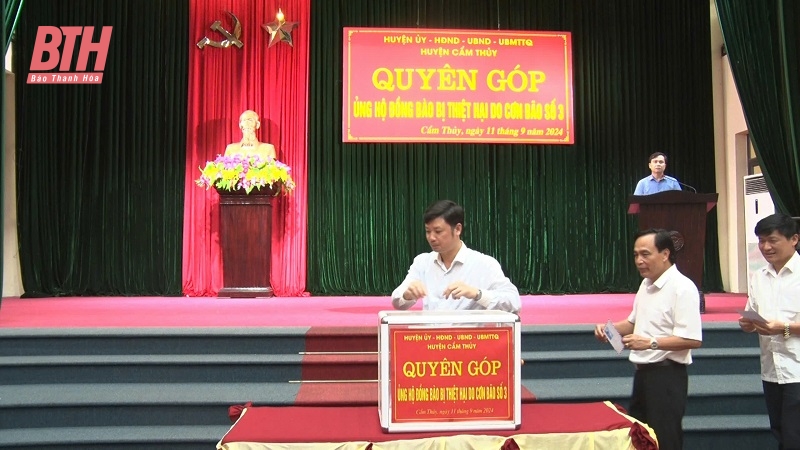 * Huyện Cẩm Thủy đã phát động và kêu gọi các ban, ngành, đoàn thể, tổ chức chính trị – xã hội, các xã, thị trấn trên địa bàn cùng chung tay ủng hộ đồng bào tại các địa phương bị thiệt hại do bão lũ gây ra.